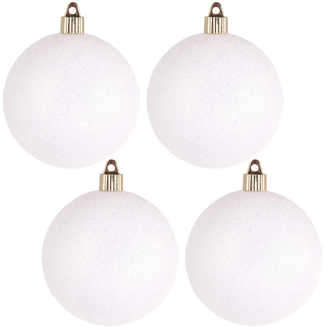 Christmas By Krebs 4" (100mm) Snowball White Glitter [4 Pieces] Solid Commercial Grade Indoor and Outdoor Shatterproof Plastic, Water Resistant Ball Ornament Decorations