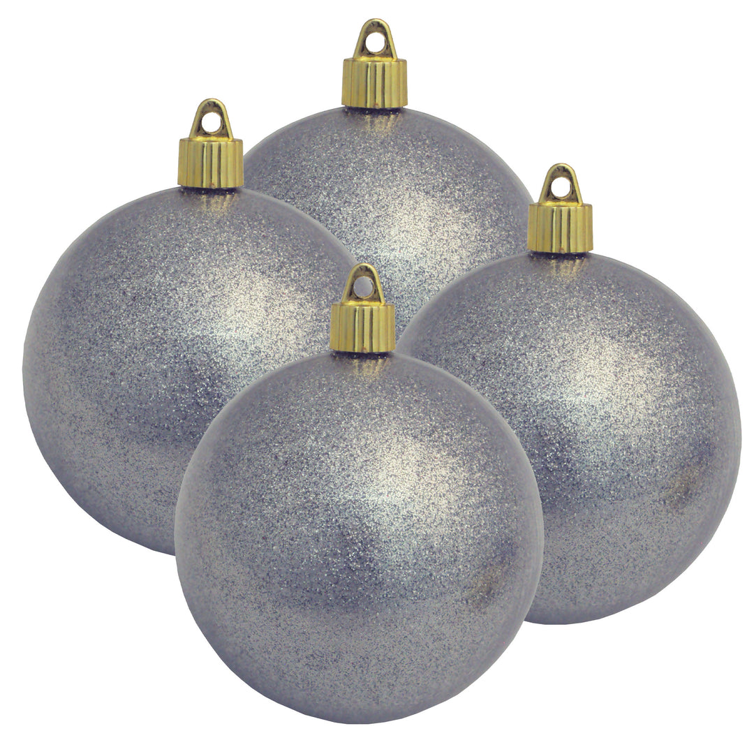 Christmas By Krebs 4" (100mm) Silver Glitter [4 Pieces] Solid Commercial Grade Indoor and Outdoor Shatterproof Plastic, Water Resistant Ball Ornament Decorations