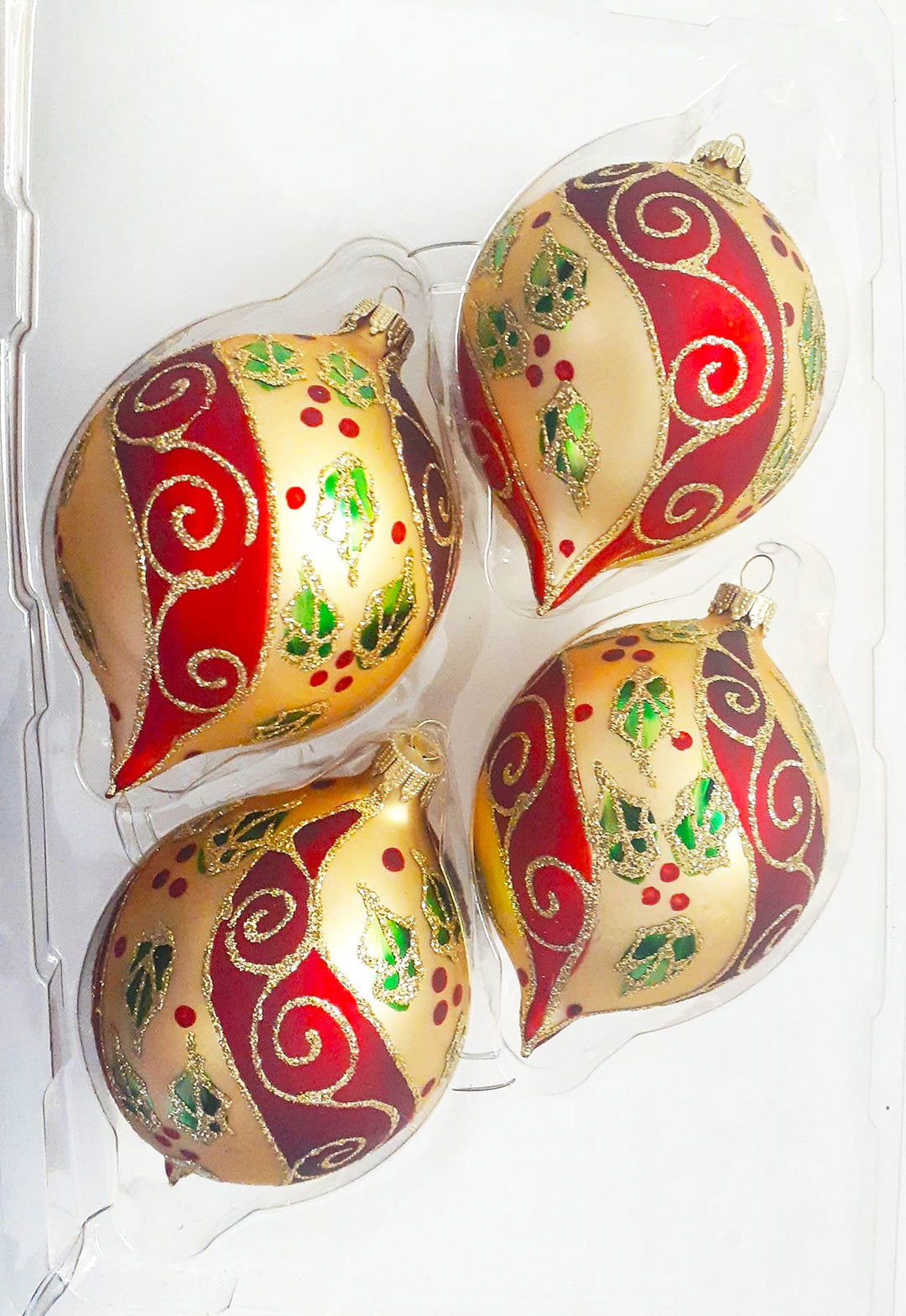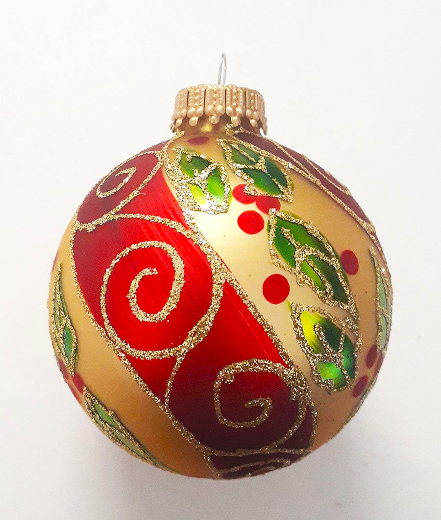 • Includes: Made in the USA & Mexico Decorated Seamless Glass Ball Ornaments, 2 5/8" (67mm), Box of 4.
