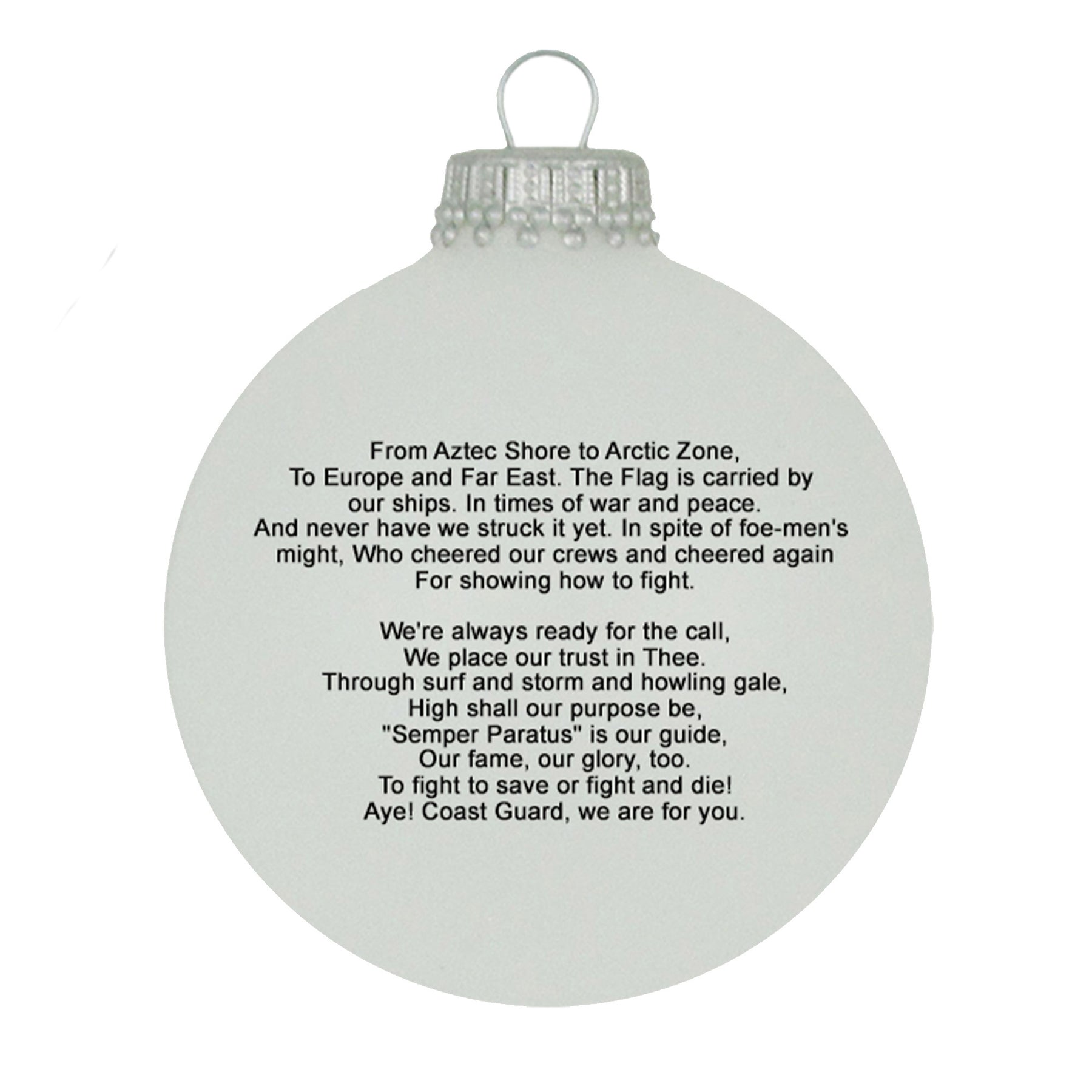 Christmas Tree Ornaments Made in the USA - 80mm / 3.25" Decorated Collectible Glass Balls from Christmas by Krebs - Handmade Hanging Holiday Decoration for Trees (USCG Logo & Hymn)