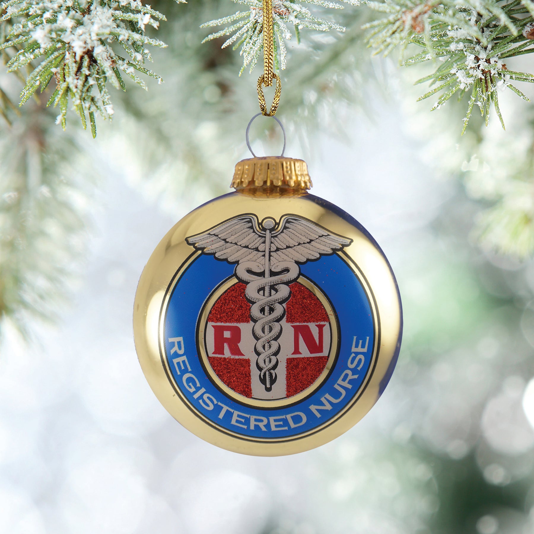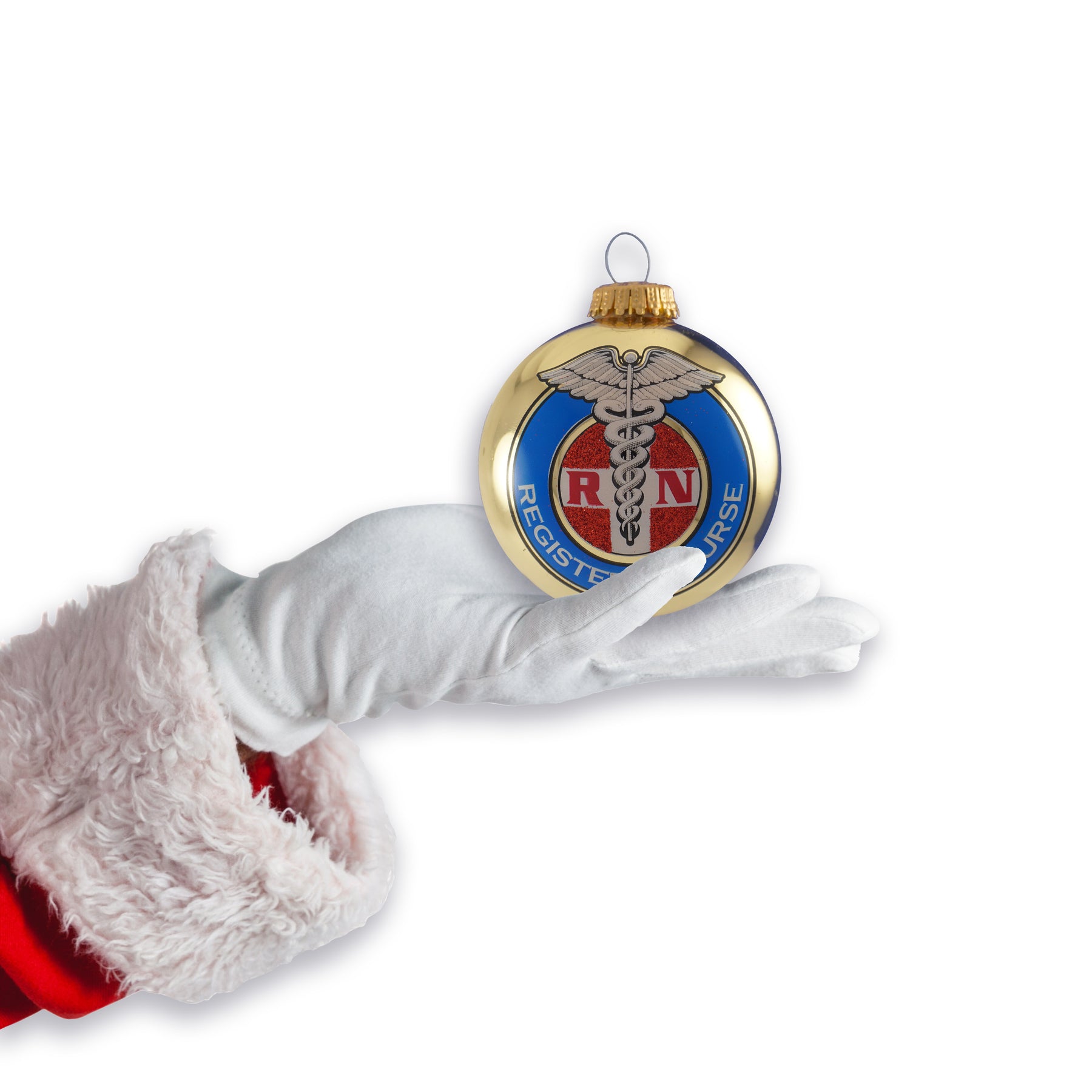 Christmas Tree Ornaments - 80mm / 3.25" Decorated Collectible Glass Balls from Christmas by Krebs - Handmade Hanging Holiday Decorations for Trees (Gold Velvet with Nurse Icon)