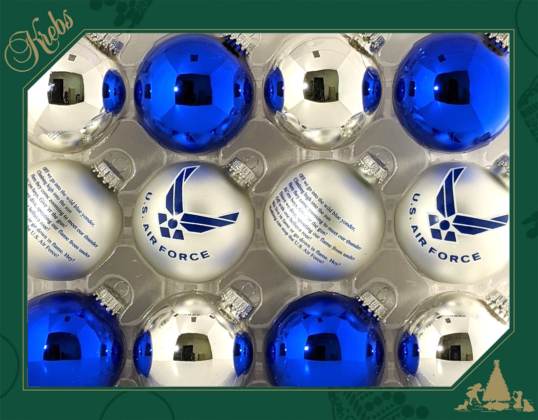 Christmas Tree Ornaments - Military Glass Balls from Christmas by Krebs - Handmade Seamless Hanging Holiday Decorations for Trees (67mm/2.625" Blue and Silver Space Force-USSF Variety Set of 12)