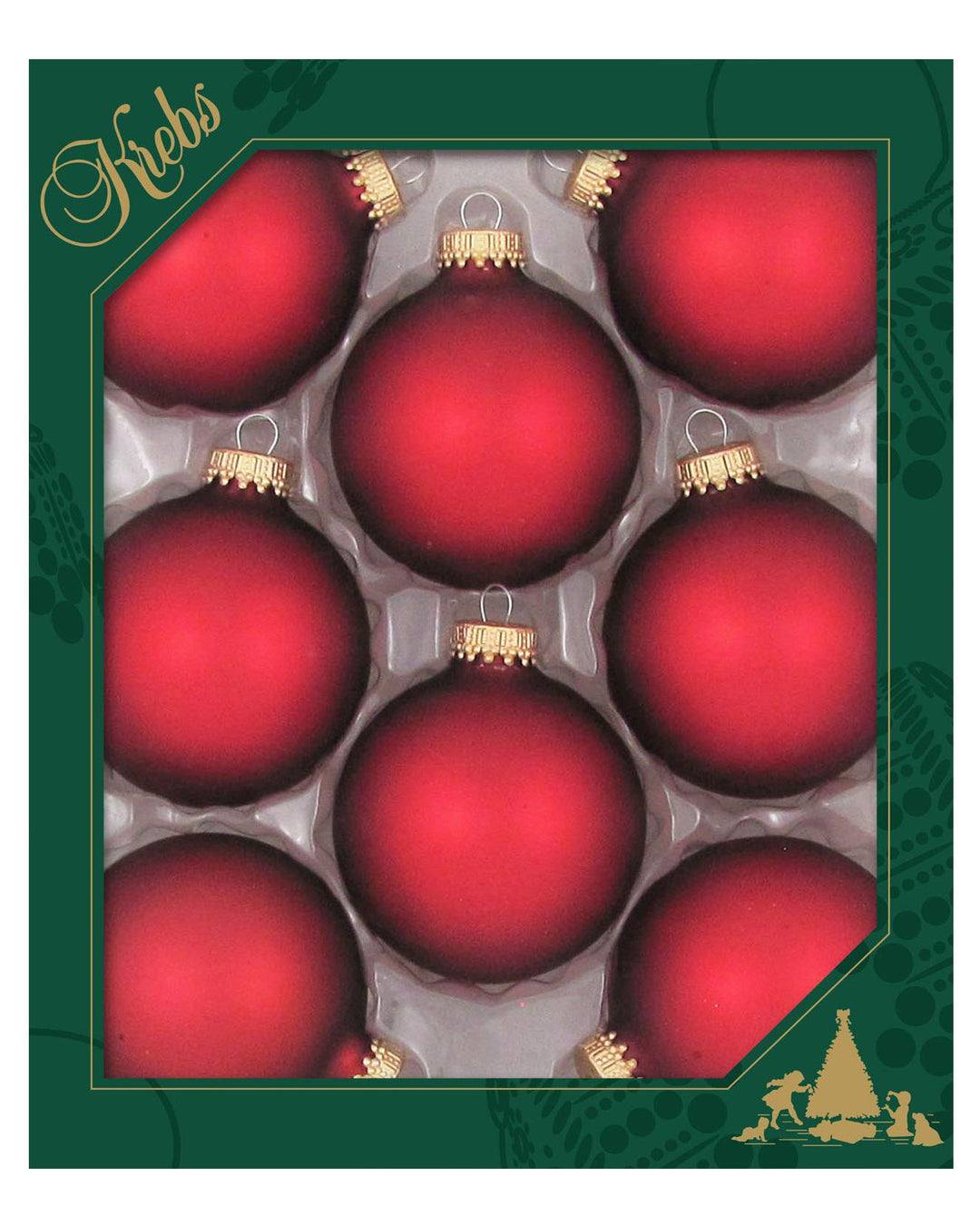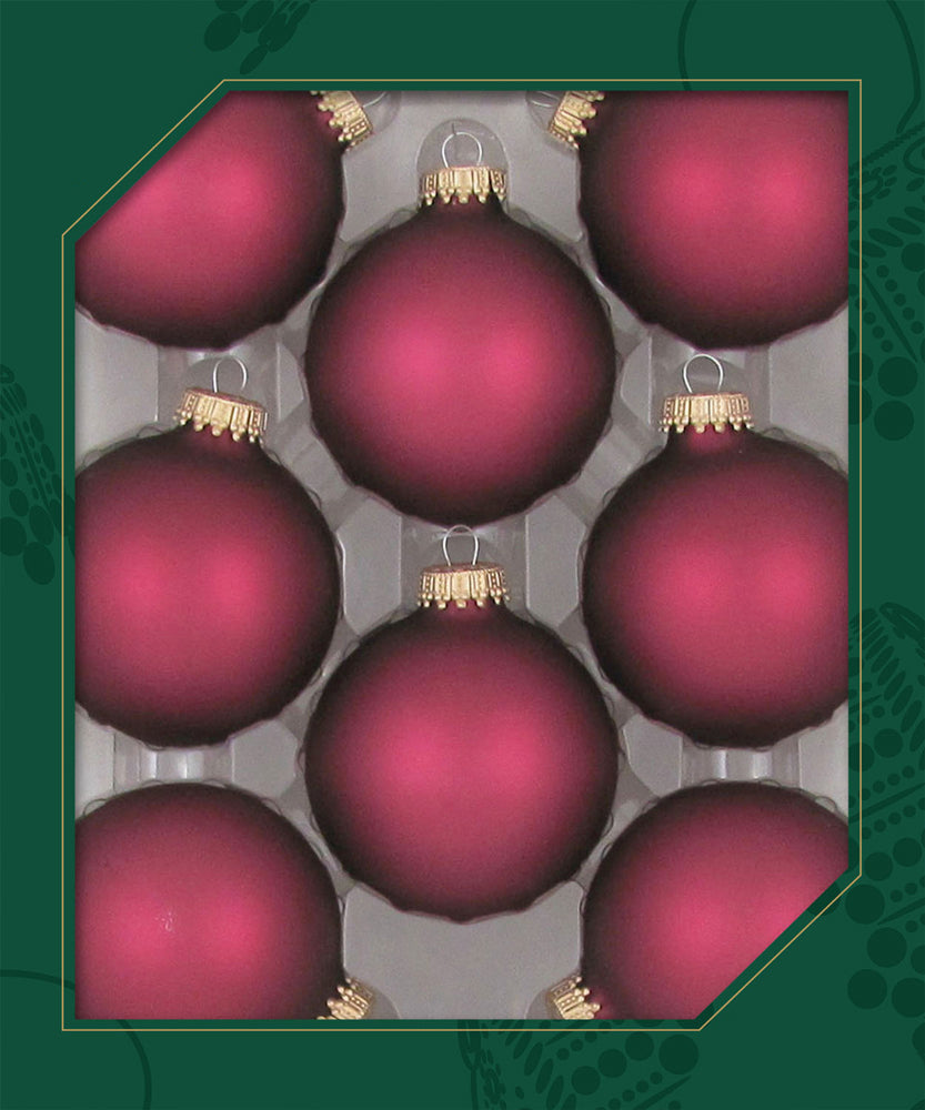 2 5/8" (67mm) Seamless Glass Ornament [8 Pieces], Decorated Designer Heirloom (Cranberr...