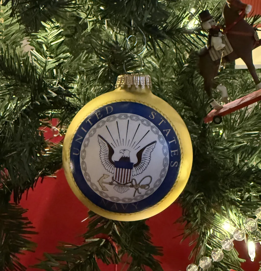 love this ornament my husband loved it being a navy Veteran he absolutely was thrilled. He received it a few years ago and accidentally broke it this year. I was so happy to get replaced so quickly. I have no photo,