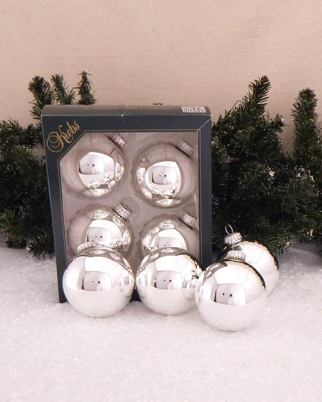Glass Christmas Tree Ornaments - 80mm / 3.25" [4 Pieces] Designer Balls from Christmas By Krebs Seamless Hanging Holiday Decor (Bright Silver)