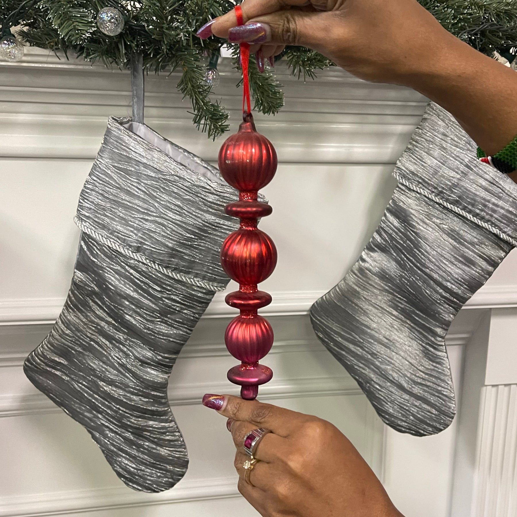 8 3/4" Large Ripple Ball Finial Glass Christmas Ornaments, Christmas Red