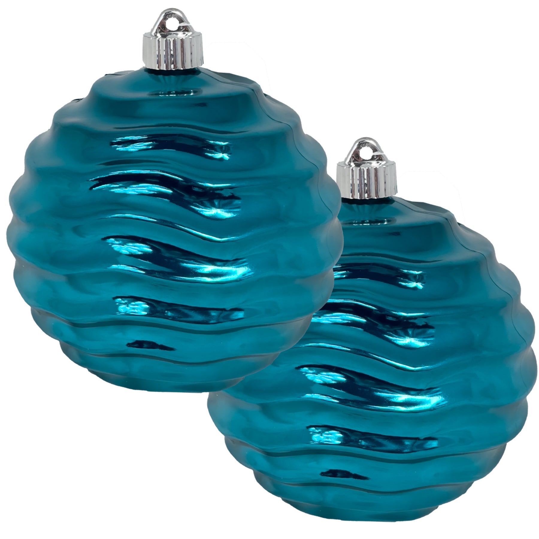 Christmas By Krebs 6" (150mm) Wavy Ripple Shiny Turquoise [2 Pieces] Solid Commercial Grade Indoor and Outdoor Shatterproof Plastic, UV and Water Resistant Ball Ornament Decorations