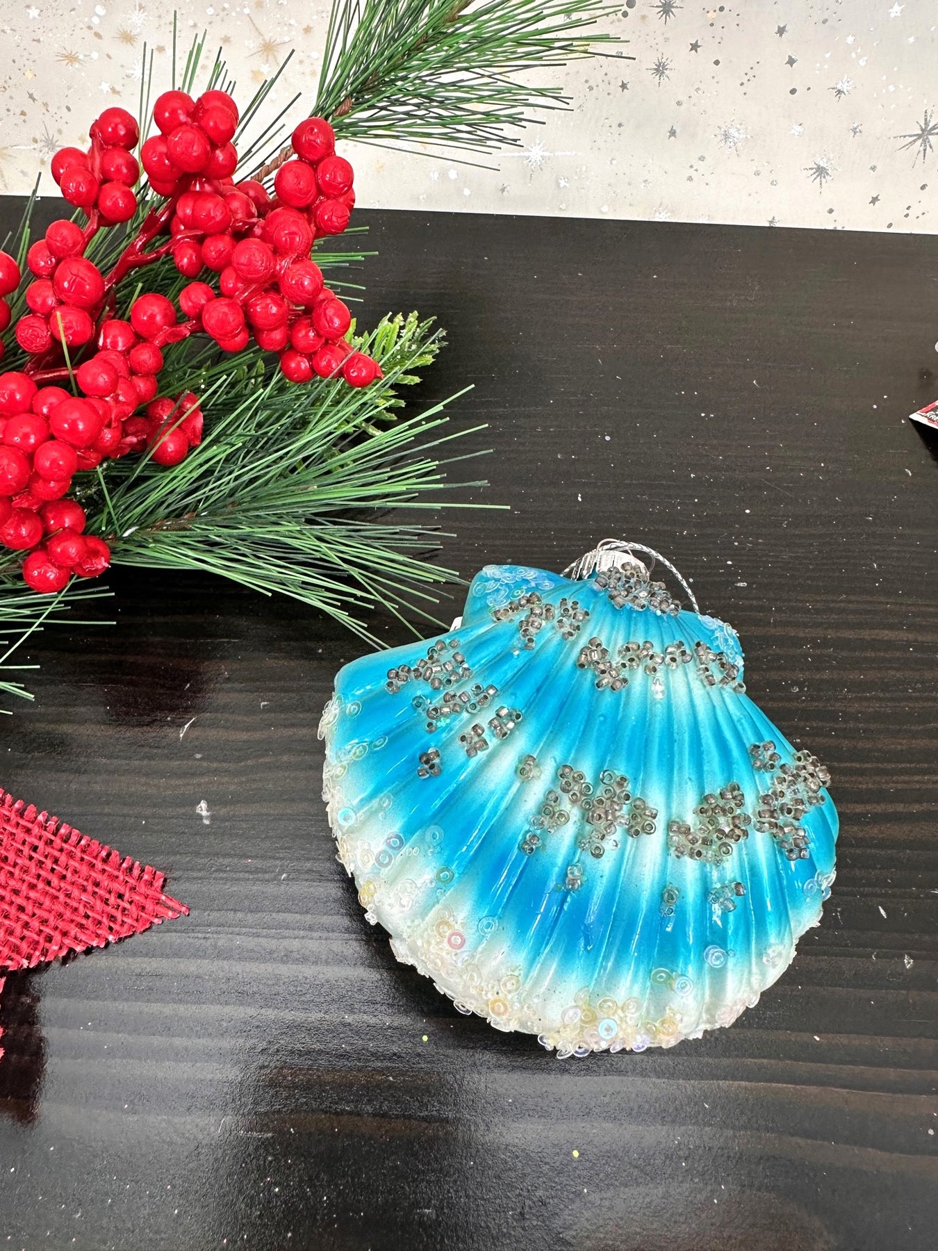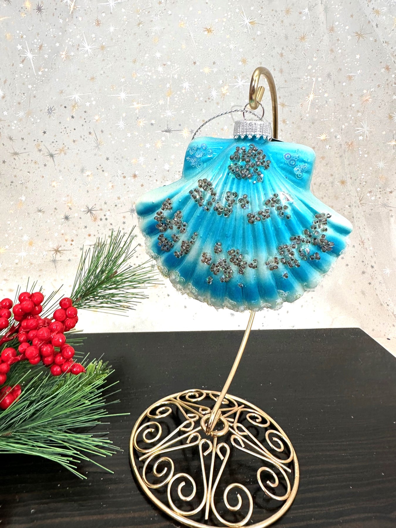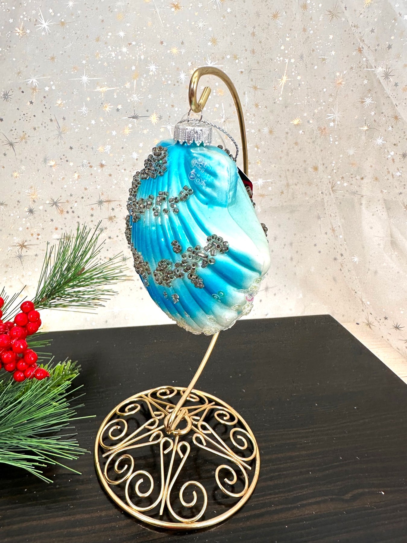 Christmas By Krebs Blown Glass  Collectible Tree Ornaments  (3 1/2" Blue Scallop Sea Shell)