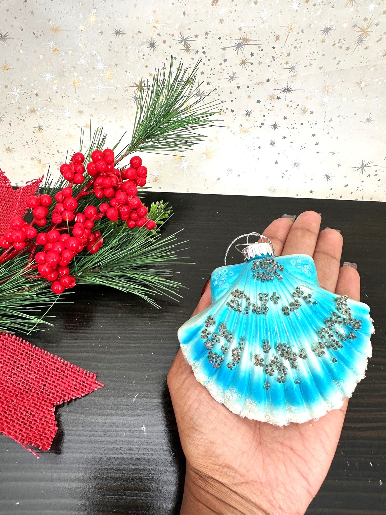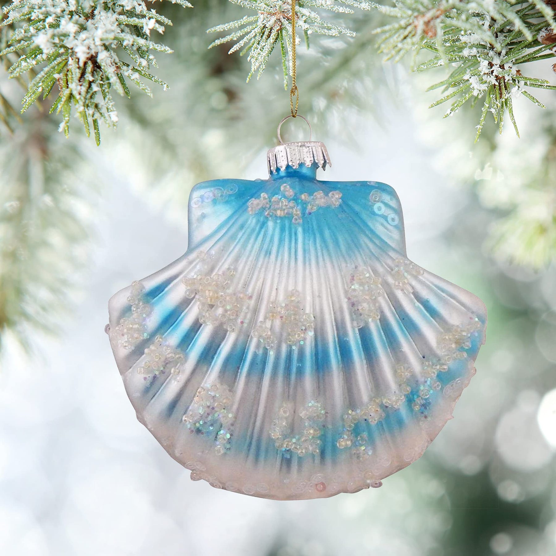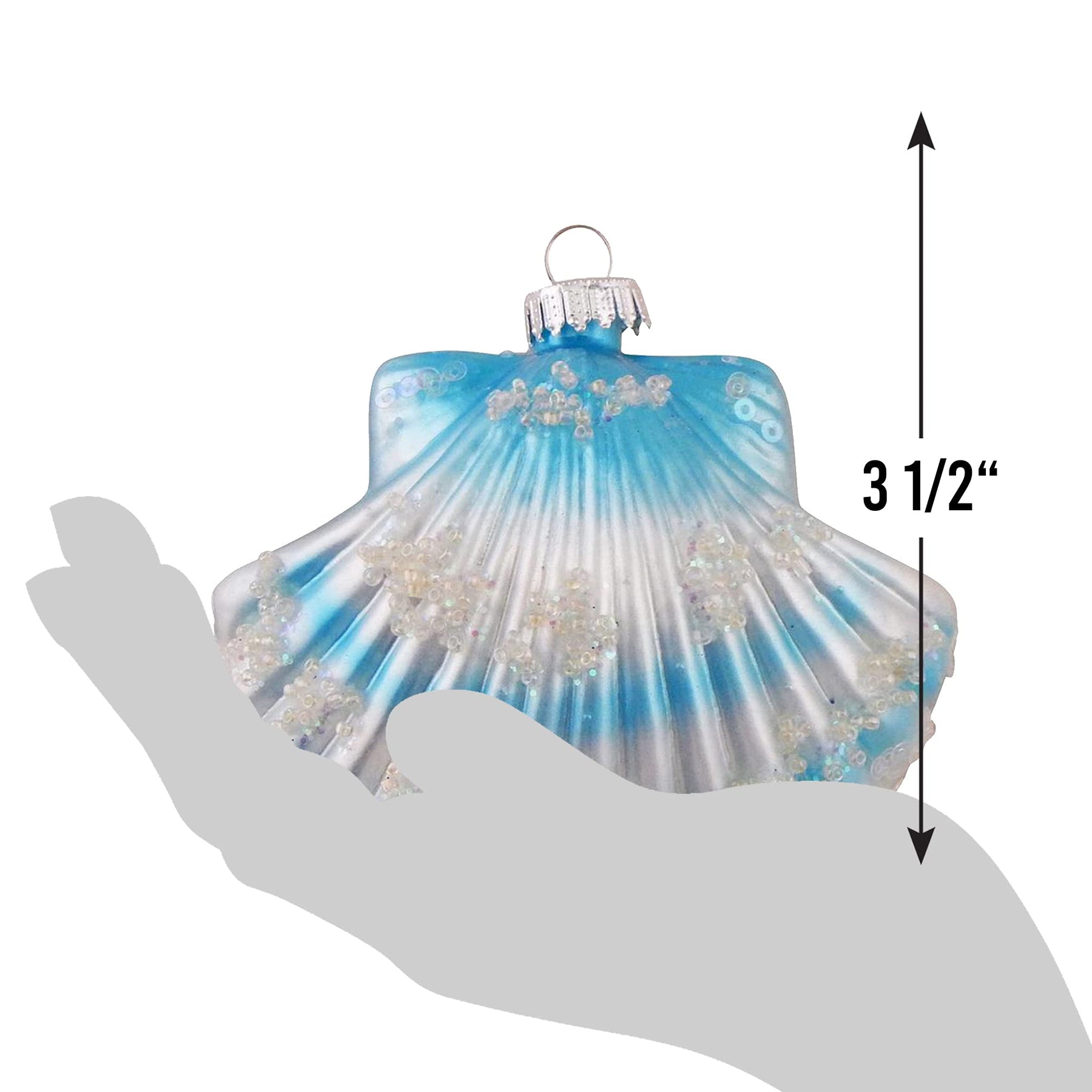 Christmas By Krebs Blown Glass Collectible Tree Ornaments (3 1/2" Blue Scallop Sea Shell)