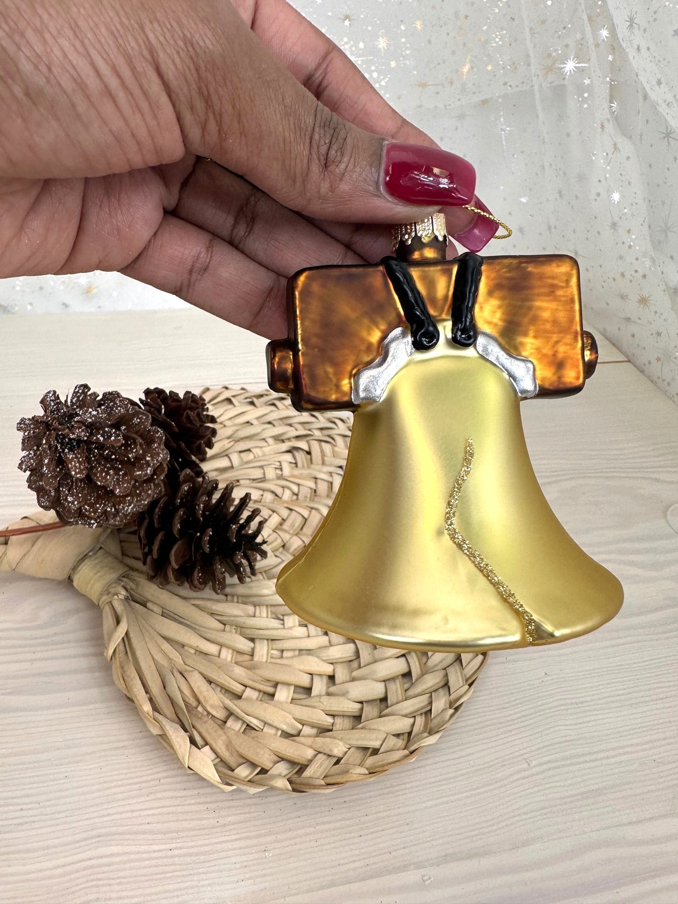 Christmas By Krebs Blown Glass  Collectible Tree Ornaments  (4" Liberty Bell)