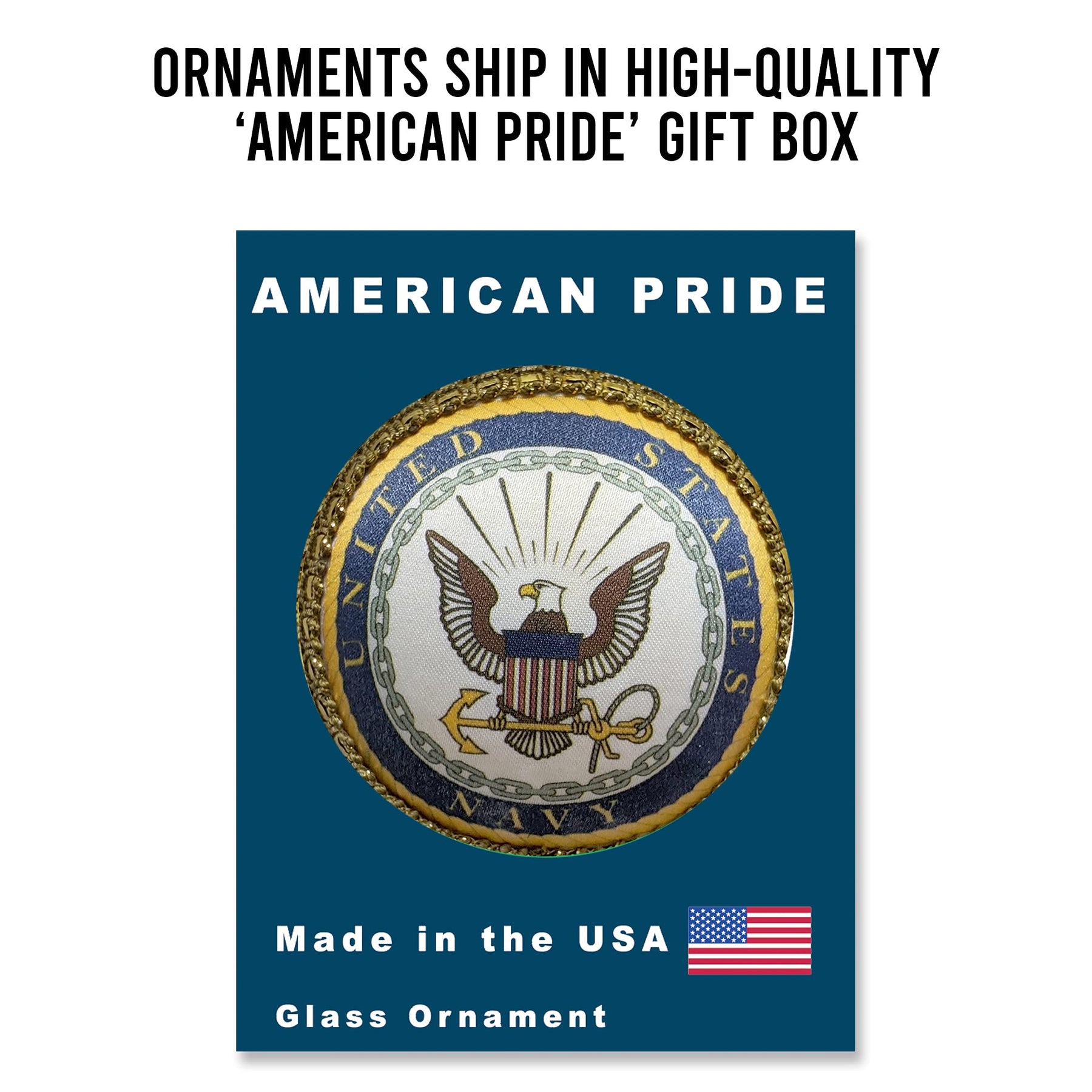 Christmas Tree Ornaments Made in the USA - 80mm / 3.25" Decorated Collectible Glass Balls from Christmas by Krebs - Handmade Hanging Holiday Decoration for Trees (USN Logo and Hymn, Silk)