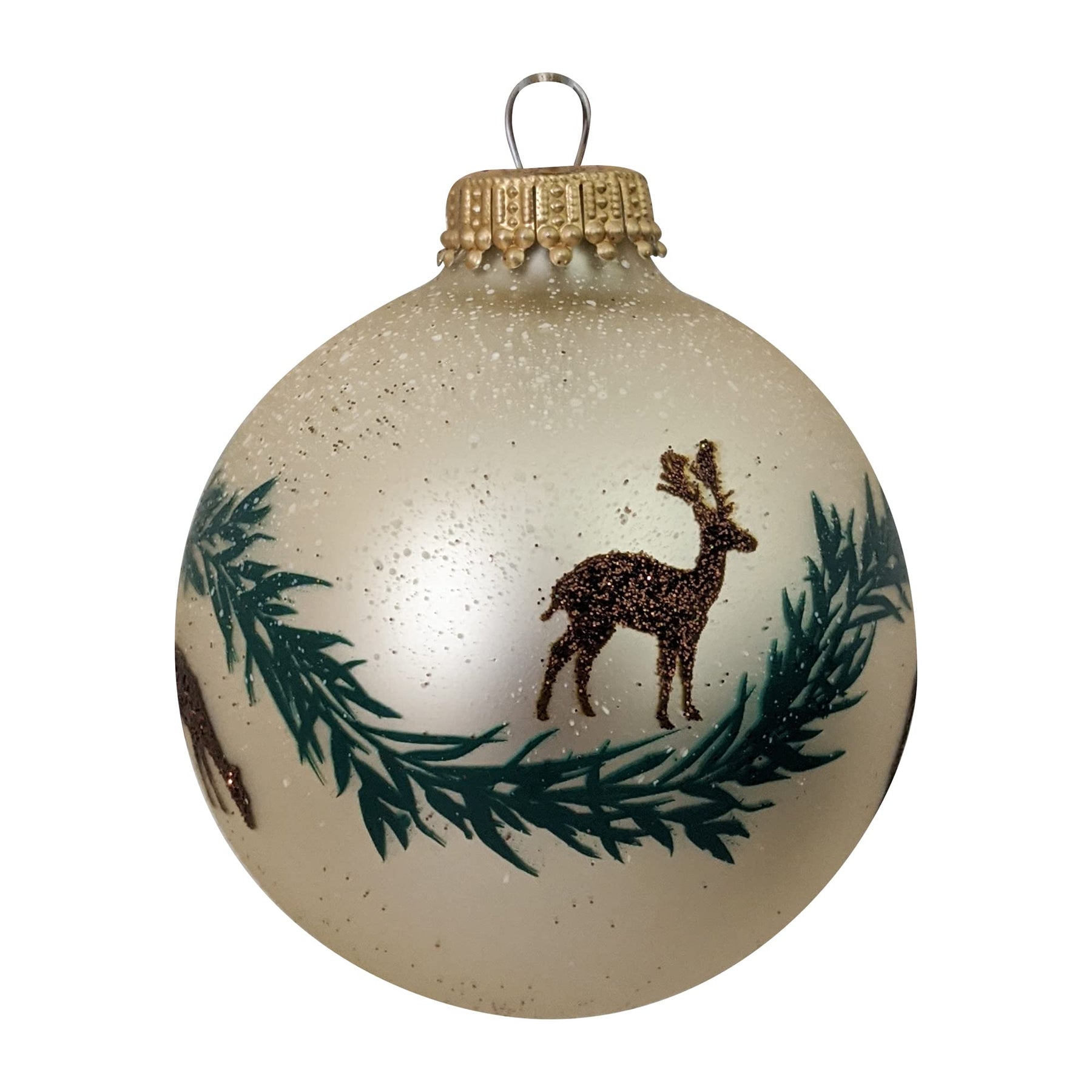 Glass Christmas Tree Ornaments - 67mm/2.63" [4 Pieces] Decorated Balls from Christmas by Krebs Seamless Hanging Holiday Decor (Oyster Velvet w/ Brown Deer & Garland)