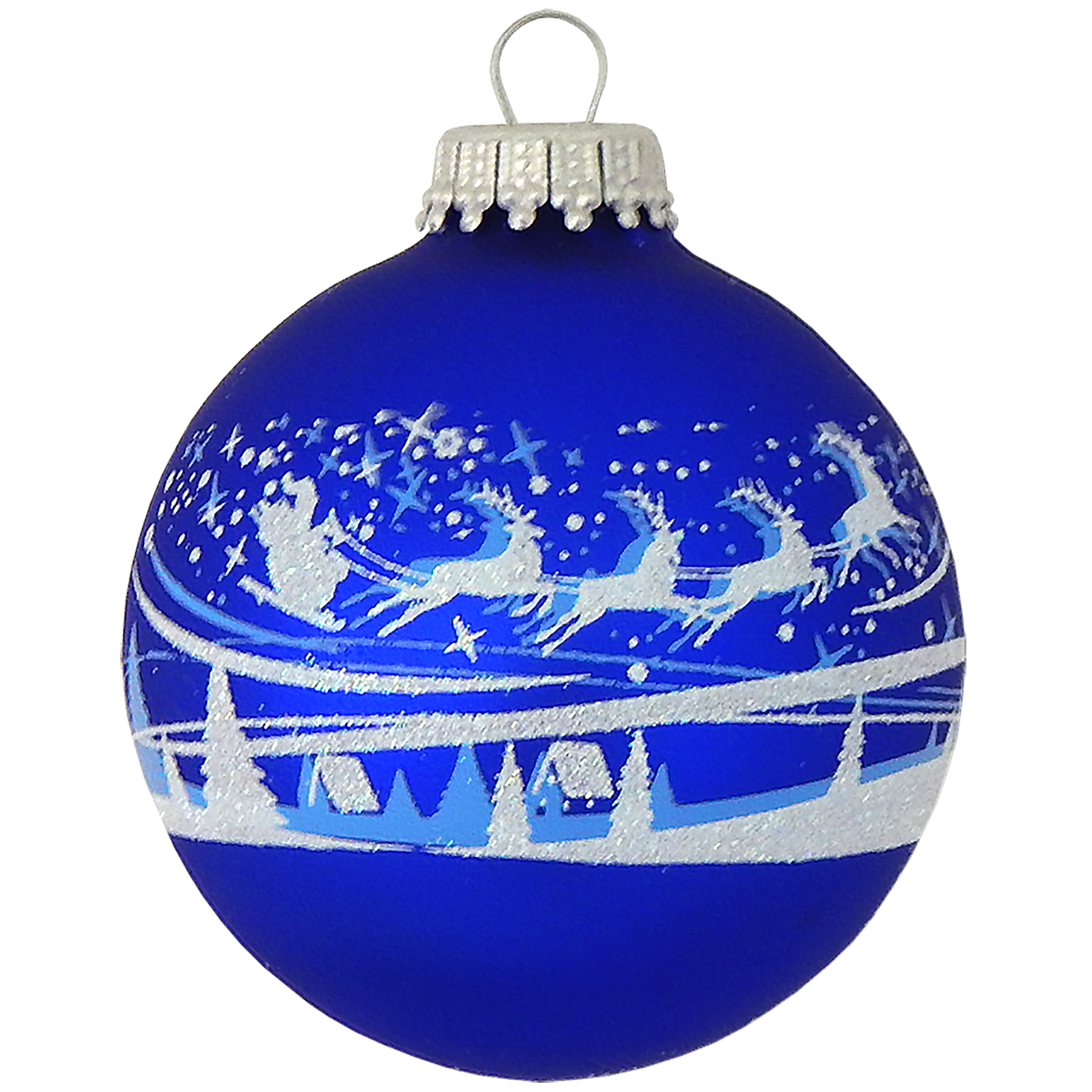 Glass Christmas Tree Ornaments - 67mm/2.63" [4 Pieces] Decorated Balls from Christmas by Krebs Seamless Hanging Holiday Decor (Royal Velvet Blue with Santa Over Village)
