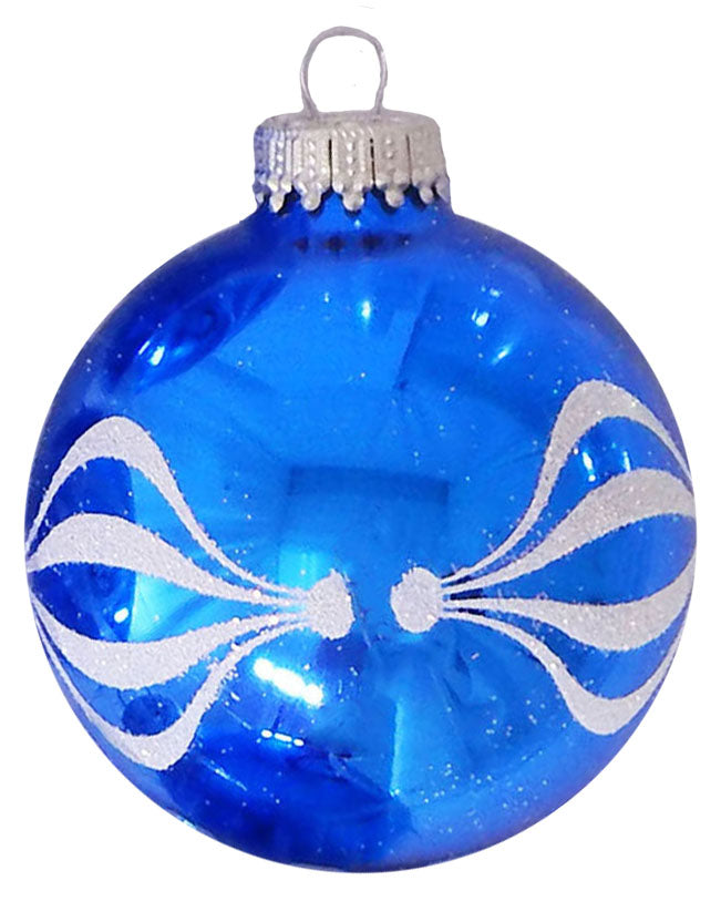Glass Christmas Tree Ornaments - 67mm/2.63" [4 Pieces] Decorated Balls from Christmas by Krebs Seamless Hanging Holiday Decor (Classic Blue Shine with White Finial Ripples)