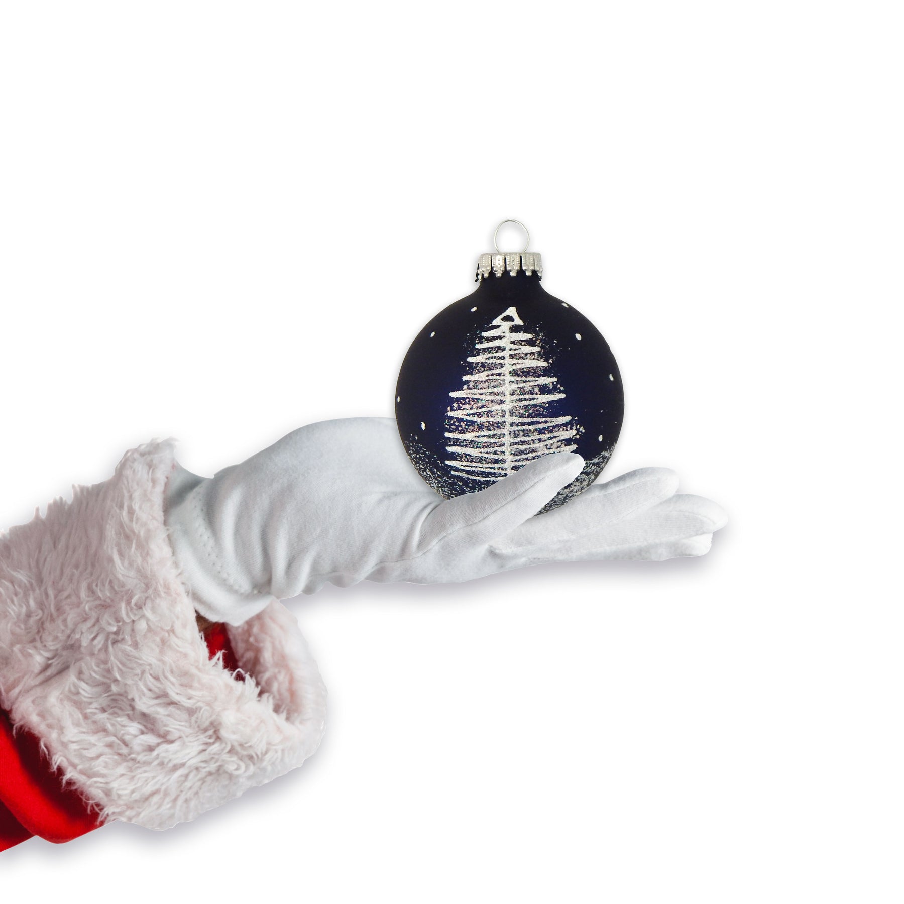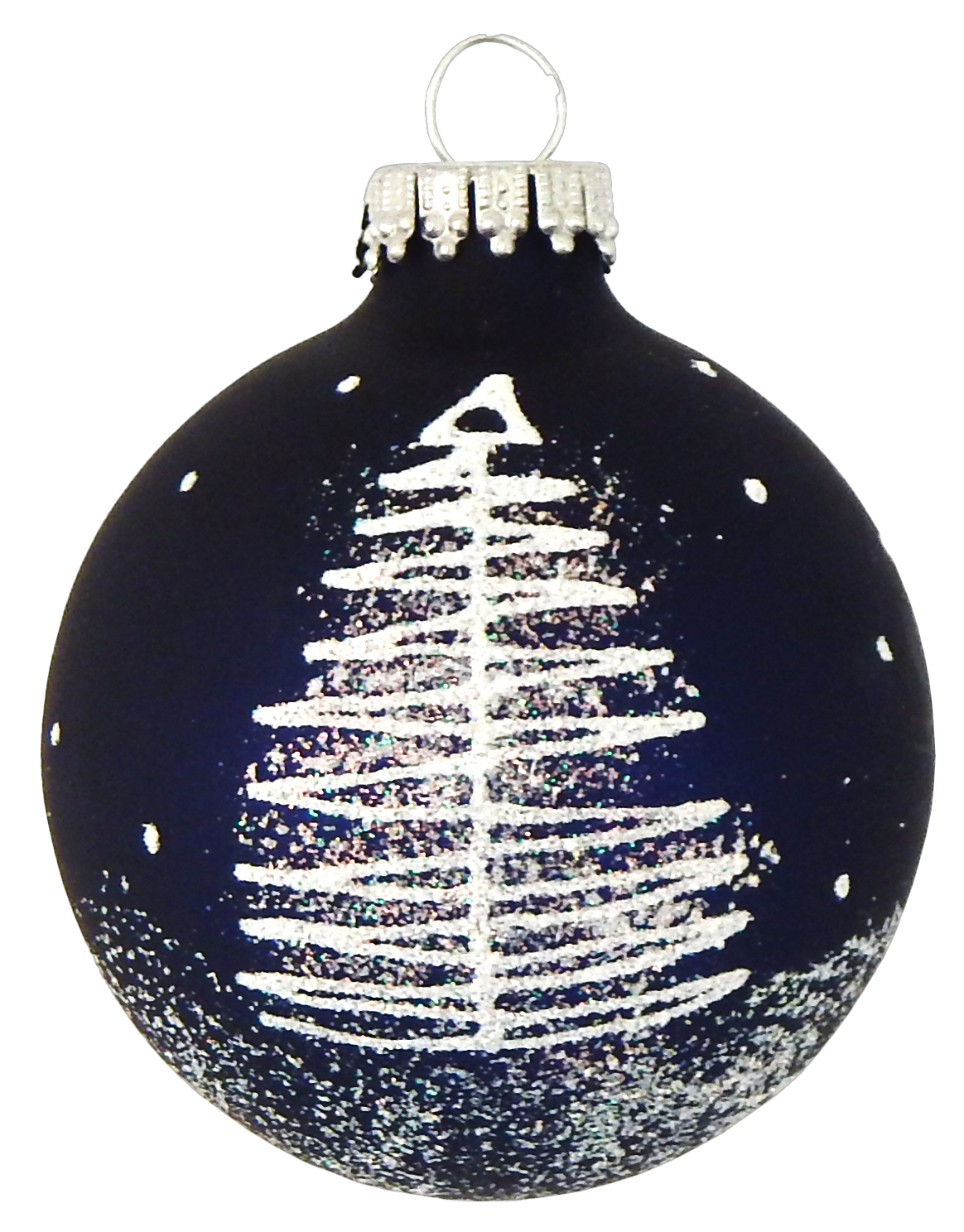 Glass Christmas Tree Ornaments - 67mm/2.625" [4 Pieces] Decorated Balls from Christmas by Krebs Seamless Hanging Holiday Decor (Navy Velvet with White Scribble Tree)