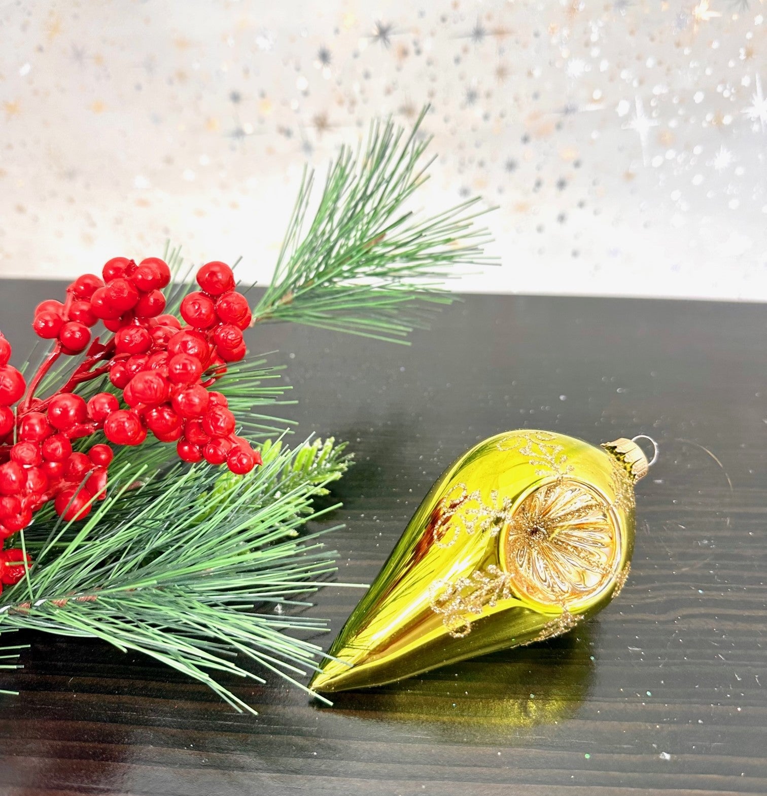 Glass Christmas Tree Ornaments - 67mm/2.625" [4 Pieces] Decorated Balls from Christmas by Krebs Seamless Hanging Holiday Decor (Shiny Green Glaze Reflector 4" Drop Shape)