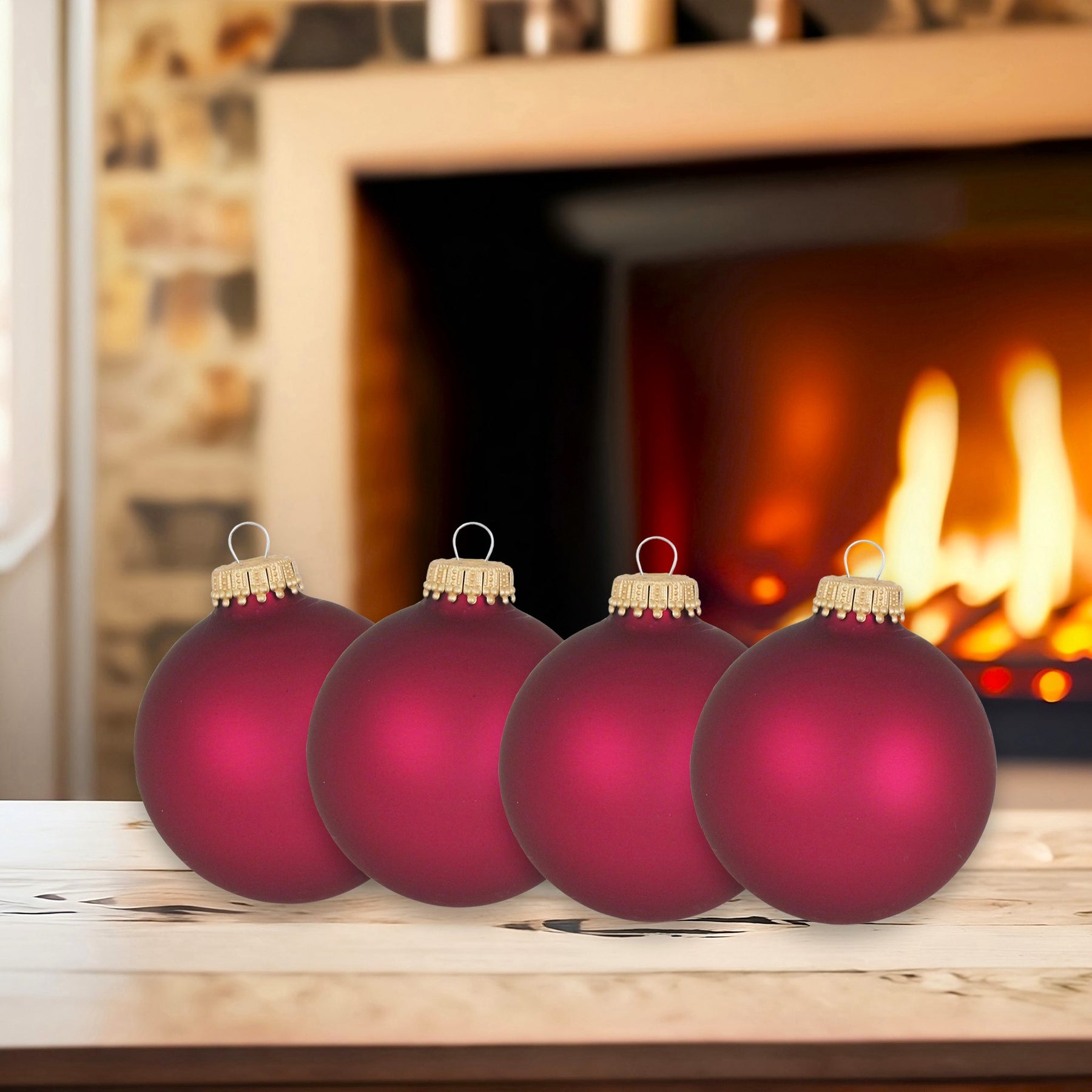 Christmas By Krebs 2 5/8" (67mm) Seamless Glass Ornament [8 Pieces], Decorated Designer Heirloom (Cranberry Red Velvet)