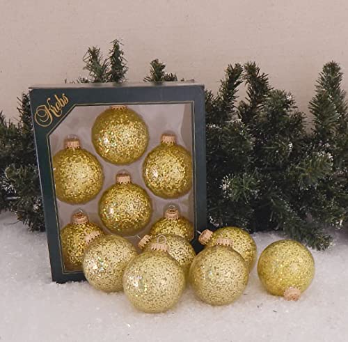 Glass Christmas Tree Ornaments - 67mm / 2.63" [6 Pieces] Designer Balls from Christmas By Krebs Seamless Hanging Holiday Decor (Gold Spangle)